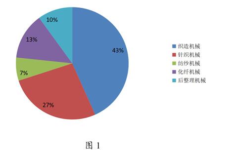 织造机械11个样品,针织机械8个样品,纺纱机械2个样品,化纤机械5个样品,后整理机械3个样品。各类分别占比如图1。